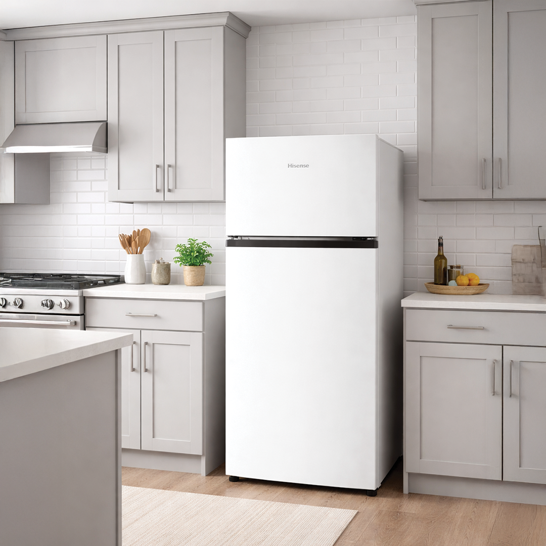 The Hisense RD-27DR4SA in its stunning Classic White finish is the perfect blend of traditional clean aesthetics and modern cooling efficiency. This 8-cubic-foot model is specifically designed for those who want a bright, airy feel in their kitchen without compromising on high-end features.